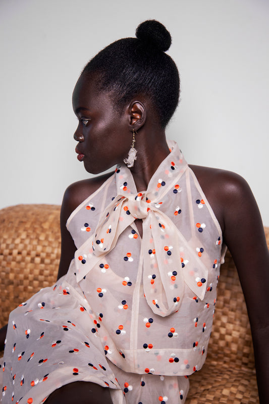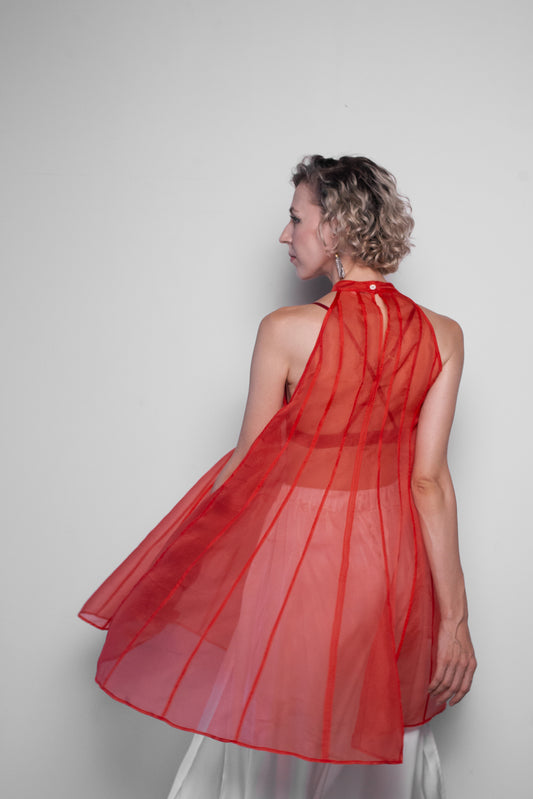The first collection includes dresses and tops from silk organza - an extraordinary see-through material. This is an outer layer that can be combined with both casual or more elegant items from ones wardrobe. Our vision is a dress as a self expression and a piece of art, not a typical apparel. We start with organza collection and will be exploring other extraordinary materials and colors that make a woman stand out of the crowd and liberate her individuality.
