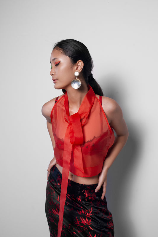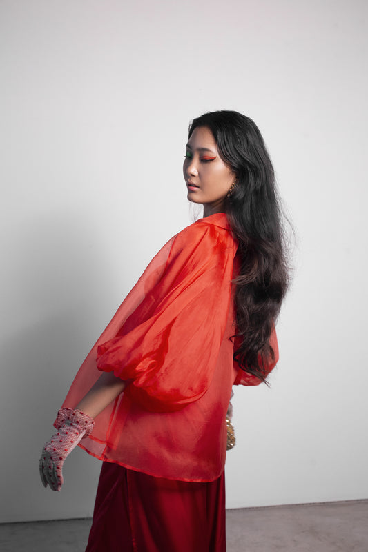 ORGANZA PUFF SLEEVE BLOUSE SCARLET